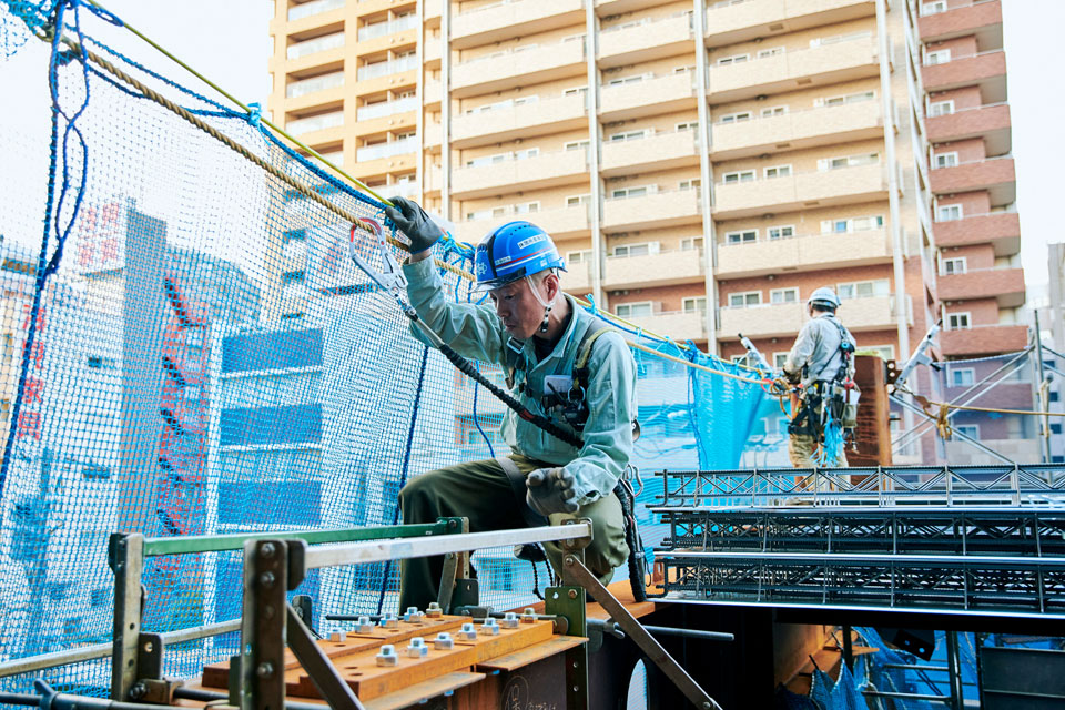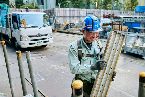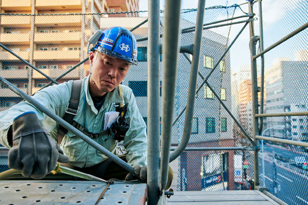 仕事の種類が多いから、ちっとも飽きないことですね。20年くらいやっていますけど、まだまだ覚えることがあります。あと、鳶って現場のリーダーなんです。すべての職種に関わりながら、それぞれの人が働きやすいように足場を組み、周りに指示を出します。鳶がいないと現場が締まらないという責任感も仕事の魅力だと思います。