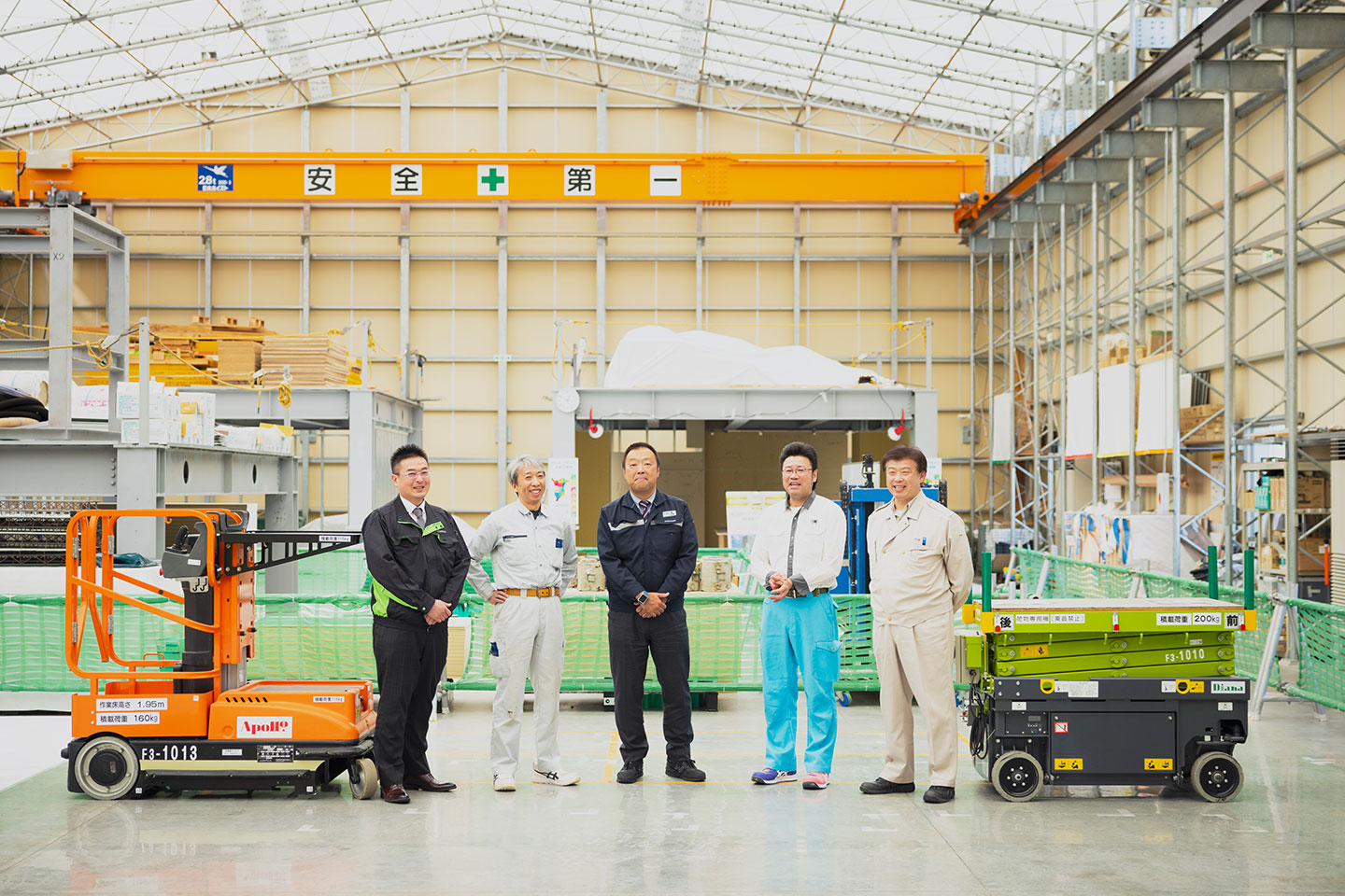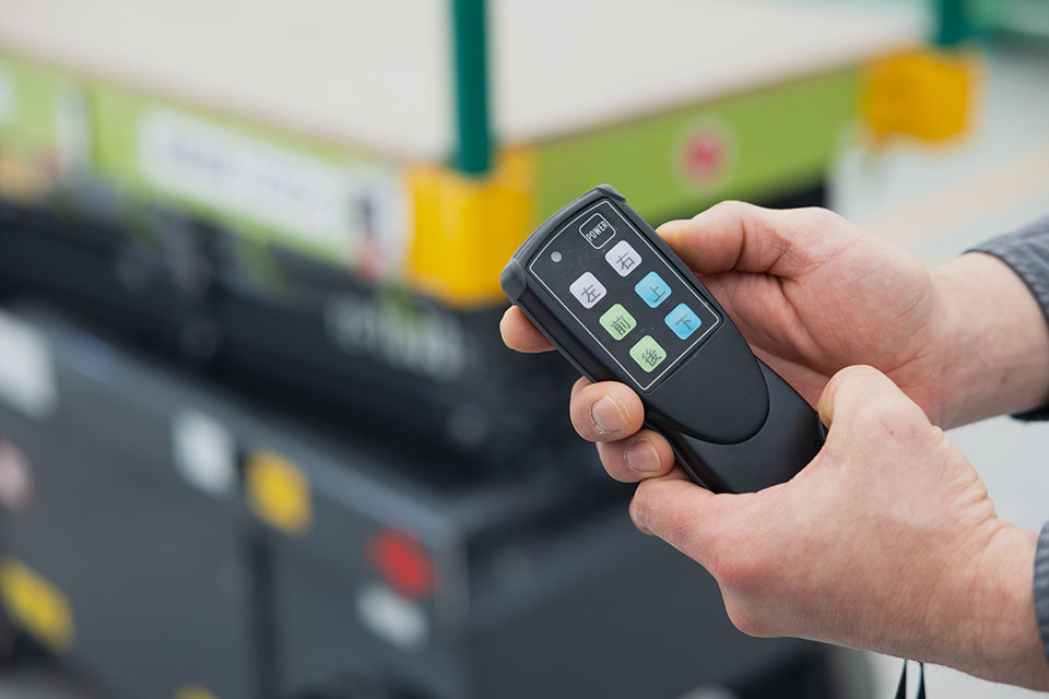 梶川さん(レンタルのニッケン)スカイランナーは、作業床が2m未満の高所作業にならない高さに限定した作業用の機械で、上がった状態で移動できる画期的な乗り物なんだ。それと一緒に使うスカイテーブルは、資材だけを載せて、運んで、上げる機械。スカイランナーに乗りながら、ラジコンみたいにリモコンで操作して動かせちゃうんだよ。