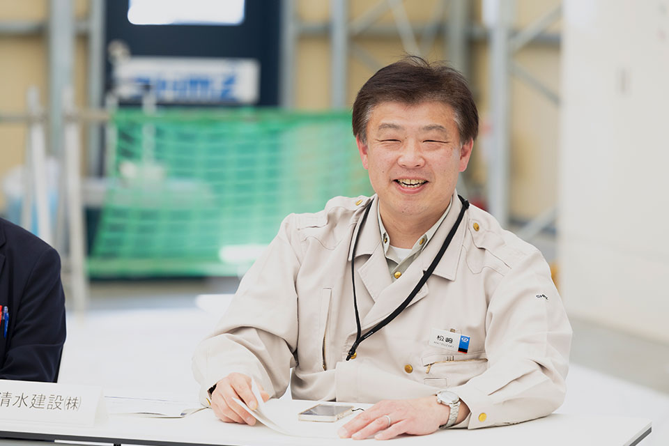 松﨑さん(清水建設)これまでは、天井に機材を取り付けるために、天台という作業床を高くするための足場づくりを作業する場所一面にしなきゃいけなかったんだ。そこがなくなるのが一番大きな変化だね。