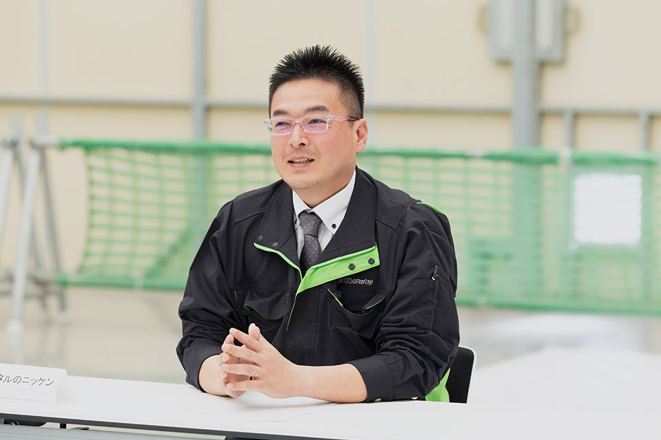 梶川さん(レンタルのニッケン)もともと高所作業用の機械はあったんだよね。でも安全上の問題で、作業の場所を変える度に下がって、移動して、また上がって、を繰り返さなきゃいけなかった。だから上がる高さを2m未満にして、上がったまま走行できるようにしたんだ。施工のスピードも上がるんだよね。